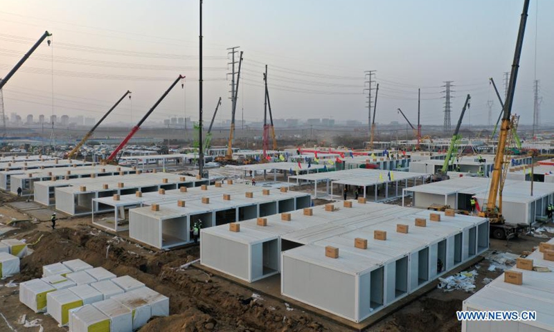 Trung tâm cách ly Covid-19 dã chiến được xây dựng ở tỉnh Hà Bắc, Trung Quốc (ảnh: Hoàn cầu)