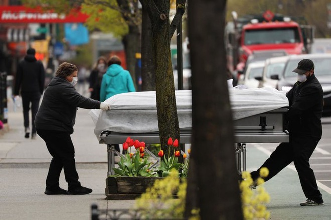 Nhân viên di chuyển hộp đựng tro cốt người chết vì Covid-19 tại New York, Mỹ, hồi tháng 4/2020. Ảnh: AFP.