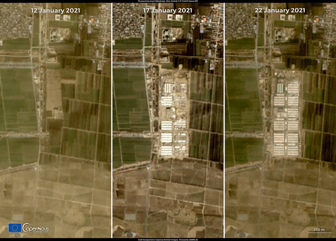 Ảnh chụp vệ tinh của Cơ quan Vũ trụ châu Âu cho thấy nhiều giường bệnh dã chiến được dựng lên ở huyện Chính Định, thuộc thành phố Thạch Gia Trang - thủ phủ của tỉnh Hà Bắc - trong vỏn vẹn 10 ngày, kể từ hôm 13/1.