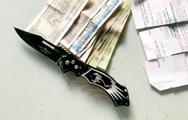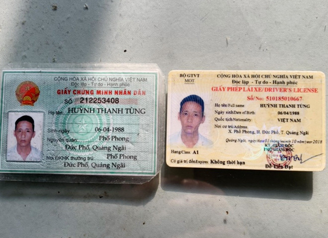 Cùng với việc thu giữ 1 con dao bấm và chiếc xe máy BKS 78H3-8462, Công an thị xã Đông Hòa còn phát hiện trong ví da của nghi can có thẻ tín dụng, chứng minh nhân dân, giấy phép lái xe mang tên Huỳnh Thanh Tùng...