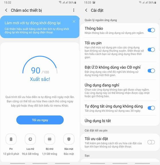 Đầu tiên, bạn hãy vào Settings (cài đặt) - Devices care (chăm sóc thiết bị) - Battery (pin), nhấn vào biểu tượng ba chấm ở góc trên bên phải và chọn Settings (cài đặt) - Auto disable used apps (tự động tắt ứng dụng không dùng). Lưu ý, tên và vị trí các tùy chọn có thể thay đổi tùy vào thiết bị bạn đang sử dụng.