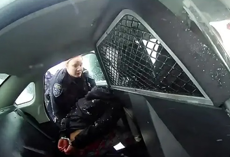 Sau đó viên sĩ quan cảnh sát đóng cửa xe lại. Trong đoạn video có trên 7 cảnh sát địa phương.