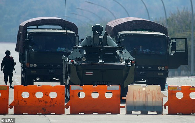 Quân đội Myanmar chặn đường dẫn đến tòa nhà Quốc hội.