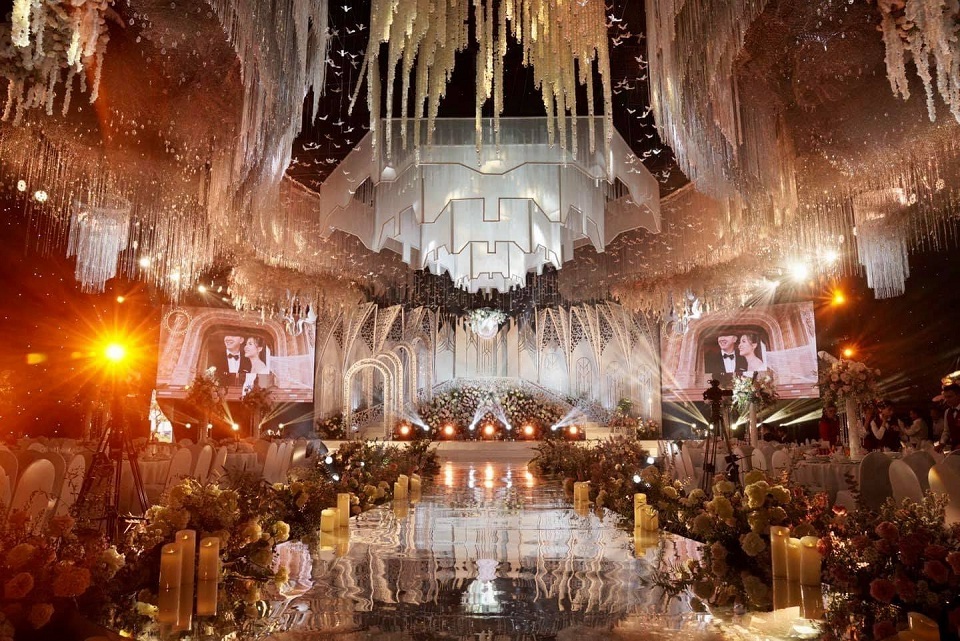 Không gian tiệc cưới huyền ảo giống như trong truyện cổ tích khiến ai nhìn vào cũng phải choáng ngợp.