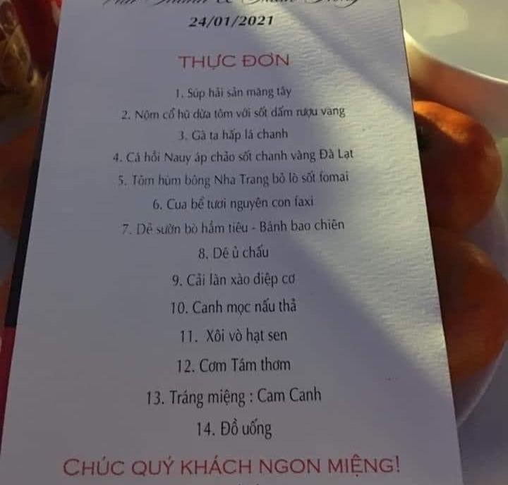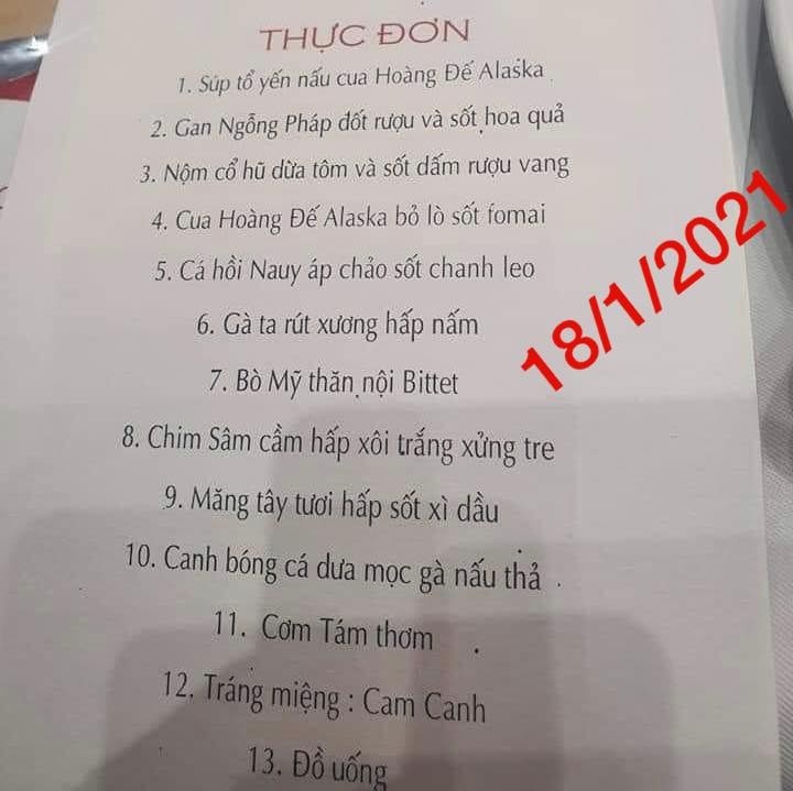 Thực đơn trong buổi tiệc ngày 18/1 khiến cư dân mạng trầm trồ.