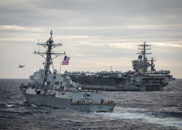 Hai nhóm tác chiến do 2 tàu sân bay Mỹ dẫn đầu thực hiện cuộc tập trận chung ở Biển Đông. Cuộc tập trận diễn ra sau khi một chiến hạm của Washington tuần tra đảm bảo tự do hàng hải gần quần đảo Hoàng Sa chỉ vài ngày.