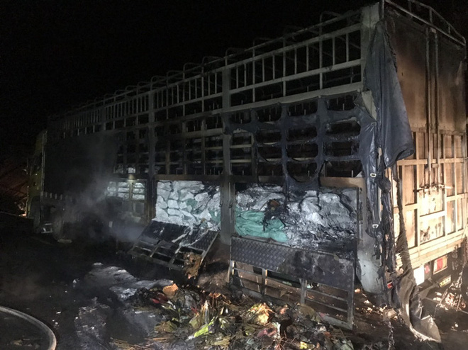 Chiếc xe tải chở vàng mã và bột đá từ Hà Nội đi tỉnh Đắk Lắk bỗng nhiễn bốc cháy trong đêm khi đi qua địa phận tỉnh Gia Lai.