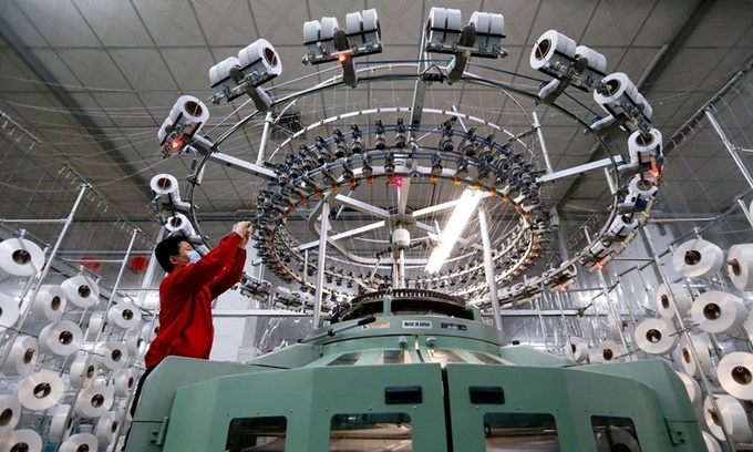 Công nhân tại một nhà máy dệt may ở thành phố Thanh Đảo, tỉnh Sơn Đông, Trung Quốc, hồi tháng hai năm ngoái. Ảnh: Reuters.
