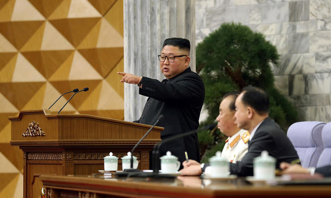 Lãnh đạo Triều Tiên Kim Jong-un trong hội nghị của đảng Lao động tại Bình Nhưỡng tuần này. Ảnh: KCNA.