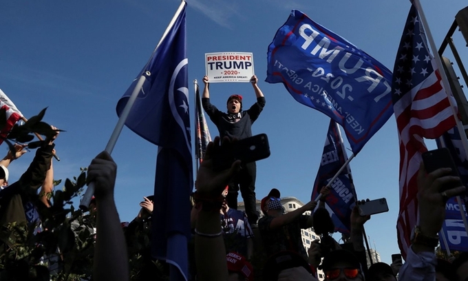Người ủng hộ Trump biểu tình phản đối gian lận bầu cử ở Washington hồi tháng 11/2020. Ảnh: Reuters