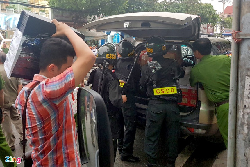 Cảnh sát đưa hồ sơ, vật chứng thu được tại Tập đoàn địa ốc Alibaba về cơ quan điều tra. Ảnh: Trần Anh.