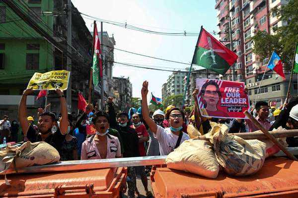 Ít nhất 5 người đã thiệt mạng trong các cuộc biểu tình kể từ khi quân đội Myanmar tiến hành đảo chính, bắt giữ nhà lãnh đạo Aung San Suu Kyi cùng các thành viên chính phủ dân sự cấp cao khác. Phía quân đội thì cho biết một cảnh sát đã thiệt mạng khi đối đầu với những người biểu tình.