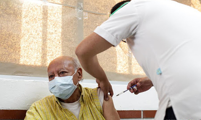 Nhân viên y tế tiêm vaccine Covid-19 cho người cao tuổi ở thành phố Mexico hôm 15/2. Ảnh: Xinhua.