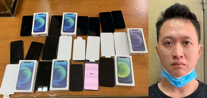 Tiến hành khám xét khẩn cấp chỗ ở của đối tượng, cơ quan Công an thu giữ 22 chiếc điện thoại iPhone 12 và 1 chiếc xe máy Honda SH.