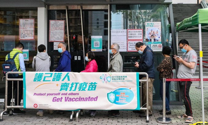 Hong Kong khởi động chương trình tiêm chủng vào cuối tháng 2 bằng vaccine Sinovac. Khoảng 83.400 người dân Hong Kong đã tiêm mũi đầu tiên từ ngày 22/2 tới 6/3. Thành phố nhận lô vaccine Covid-19 đầu tiên của Pfizer với 585.000 liều hôm 27/2. Hong Kong đến nay ghi nhận 11.090 ca nhiễm nCoV, trong đó 202 người đã chết.