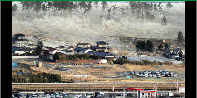 Chưa đầy một giờ sau, những đợt sóng thần đầu tiên bắt đầu ập đến. Những cơn sóng cao tới 39 mét dễ dàng vượt qua bức tường ngăn sóng, kéo sâu vào đất liền ở Sendai tới 10km.