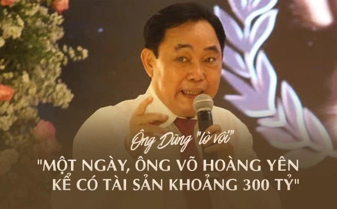 Đại gia Dũng "lò vôi" nhớ lại, vào một ngày nọ, ông Võ Hoàng Yên kể có tài sản khoảng 300 tỷ, đứng thứ nhì của huyện Tánh Linh (Bình Thuận). "Một ngày, nghe tôi chuẩn bị bán đất thì nói với tôi: "Anh Dũng biết không... nói vậy chứ tôi cũng dành dụm tích lũy, giờ tài sản của tôi cũng có 100 triệu đô".