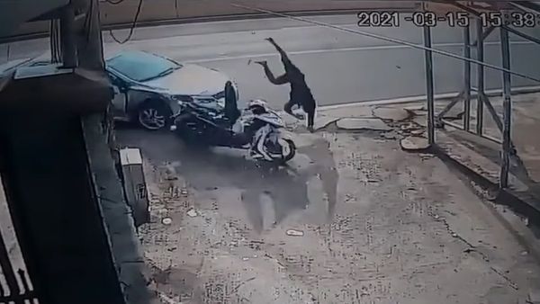 Một nam thanh niên đi xe máy lao tới trong lúc chiếc xe ô tô đang chuyển làn rẽ phải vào ngõ, khiến chạy với tốc độ cao nên tài xế xe máy không kịp xử lý, bị ô tô đâm bay trúng cột quảng cáo bên đường, nằm bất động. Vụ tai nạn giao thông nghiêm trọng xảy ra vào khoảng 15h40' ngày 15/3 khiến nhiều người sợ hãi.
