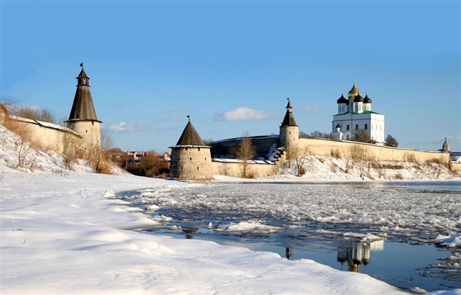 Sự việc diễn ra ngày 15/3 vừa qua khi hai bé trai 10 và 11 tuổi đi trên bờ sông Velikaya và rơi xuống nước do lớp băng mỏng bị vỡ.