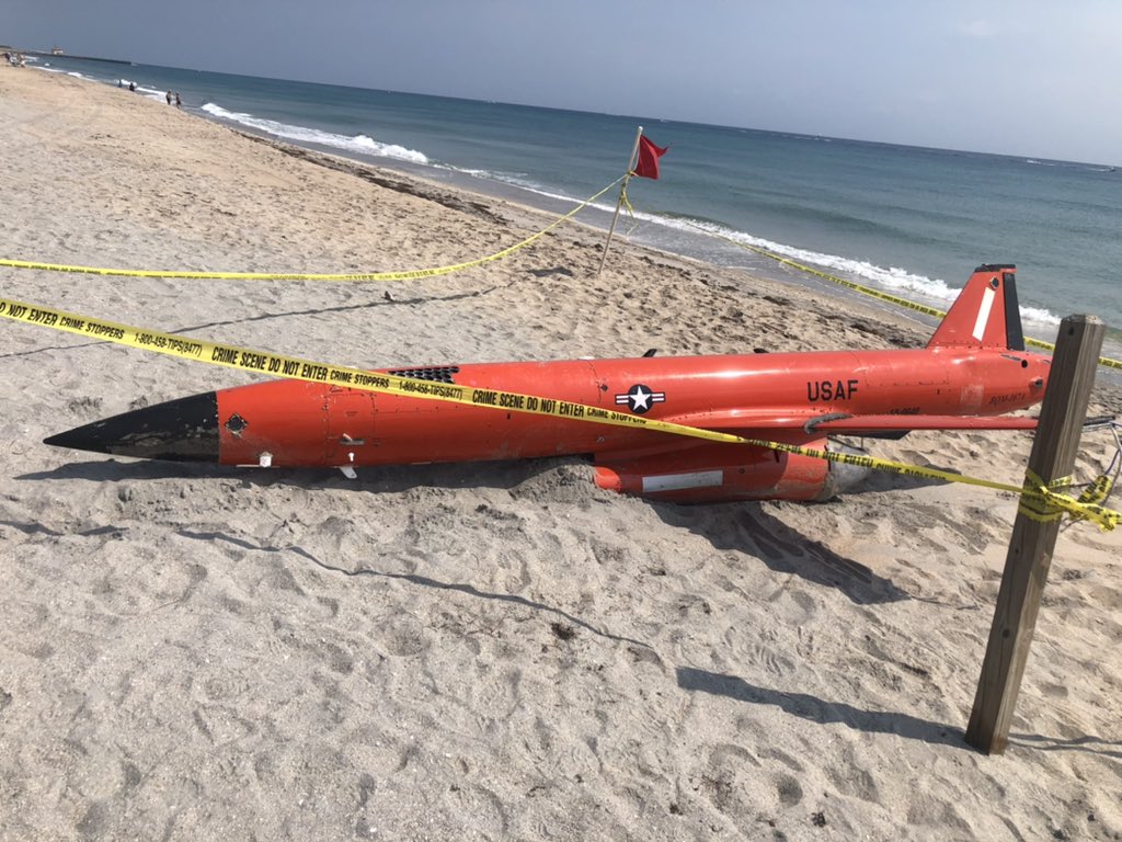 Vật thể có kích thước lớn, giống như tên lửa và có khắc chữ Không quân Mỹ ở trên thân. Người dân có mặt trên bãi biển Boynton, Florida ban đầu nghĩ rằng vật thể này có thể phát nổ.