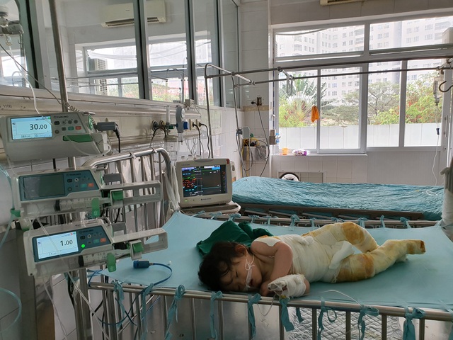 Anh Thuyết cho biết, sau khi sơ cứu tại bệnh viện huyện, các bác sĩ chuyển ngay bé Mai Chi lên bệnh viện tỉnh rồi chuyển gấp về Hà Nội ngay trong đêm. Đến bệnh viện Bỏng Quốc gia, ngay lập tức bé được chuyển vào khoa Hồi sức cấp cứu.