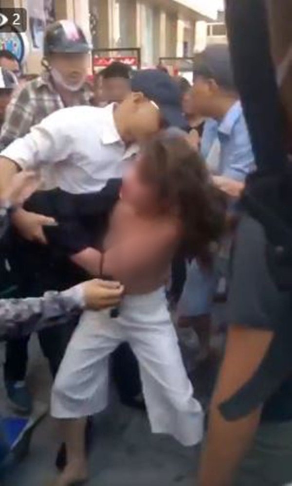 Gái trẻ xinh đẹp sau khi đi Phú Quốc với nhân tình về thì bị "chính thất" chặn đánh, lột áo giữa đường, nhiều thanh niên đến che chắn.