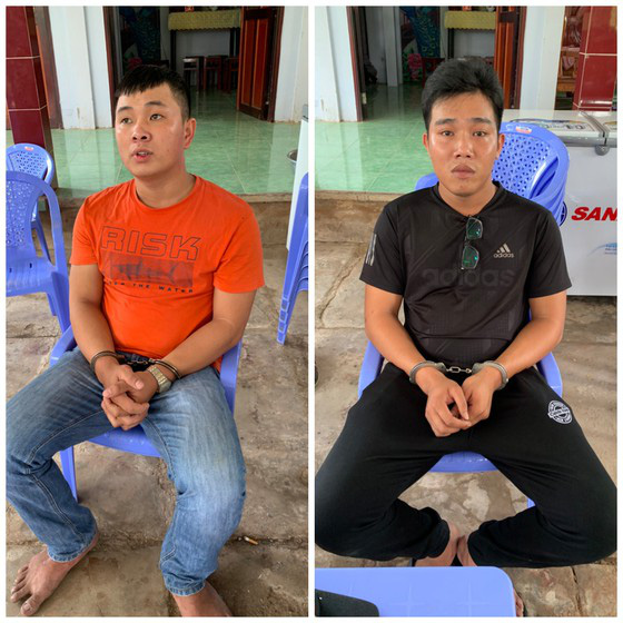 Hai đối tượng Nguyễn Lê Tuấn (áo cam) và Nguyễn Ngọc Viễn khi bị bắt. Nguồn: SGGP