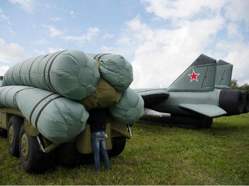 Điều đặc biệt là những chiếc tiêm kích, hệ thống tên lửa này đều được làm bằng cao su và có thể bơm hơi để phồng lên theo đúng kích thước thật của nguyên mẫu. Đây chính là một vũ khí bí mật mà quân đội Nga đã áp dụng để phô trương thanh thế.
