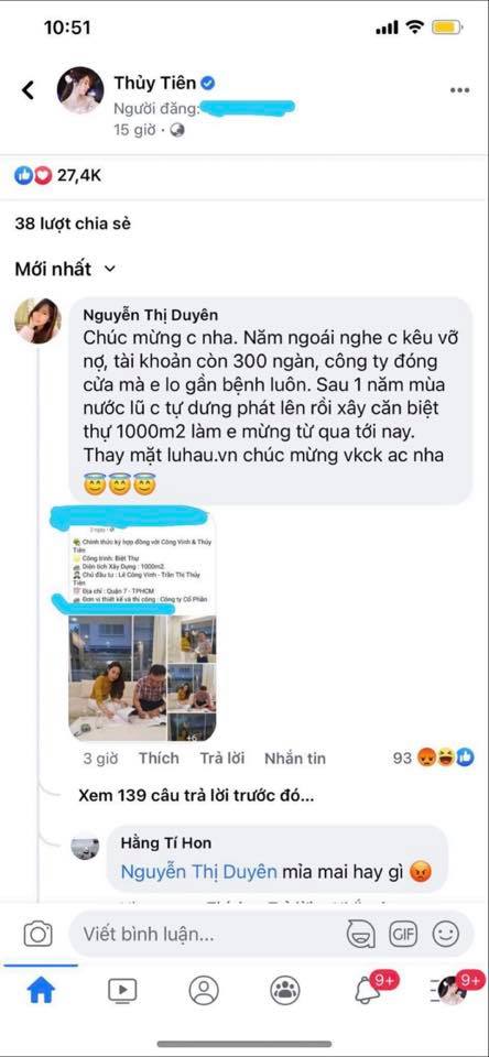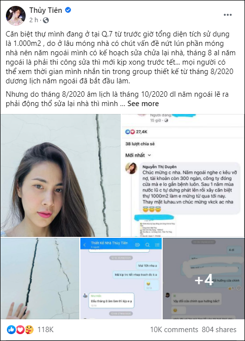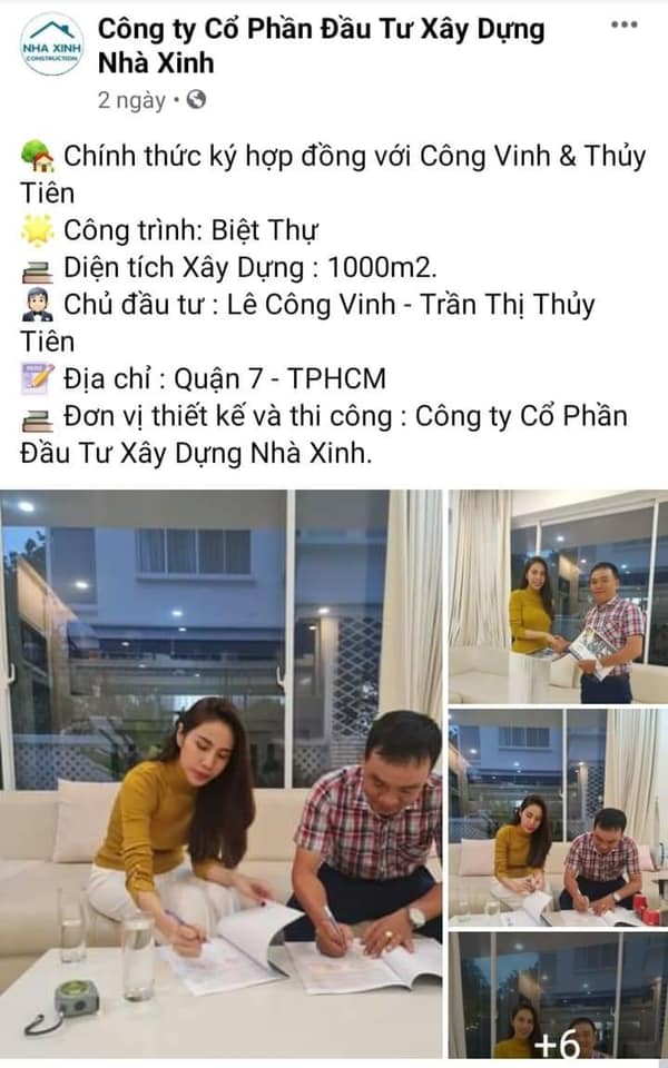 Theo đó, trên fanpage của một công ty xây dựng đã đăng tải hình ảnh kí hợp đồng xây dựng căn biệt thự hơn 80 tỷ đồng với diện tích xây dựng khoảng 1000m2 với ca sĩ Thủy Tiên. Tuy nhiên ngay sau khi đăng tải được 1 thời gian ngắn, không biết vì lý do gì mà bài đăng đã bay màu một cách bí ẩn gây tranh cãi.