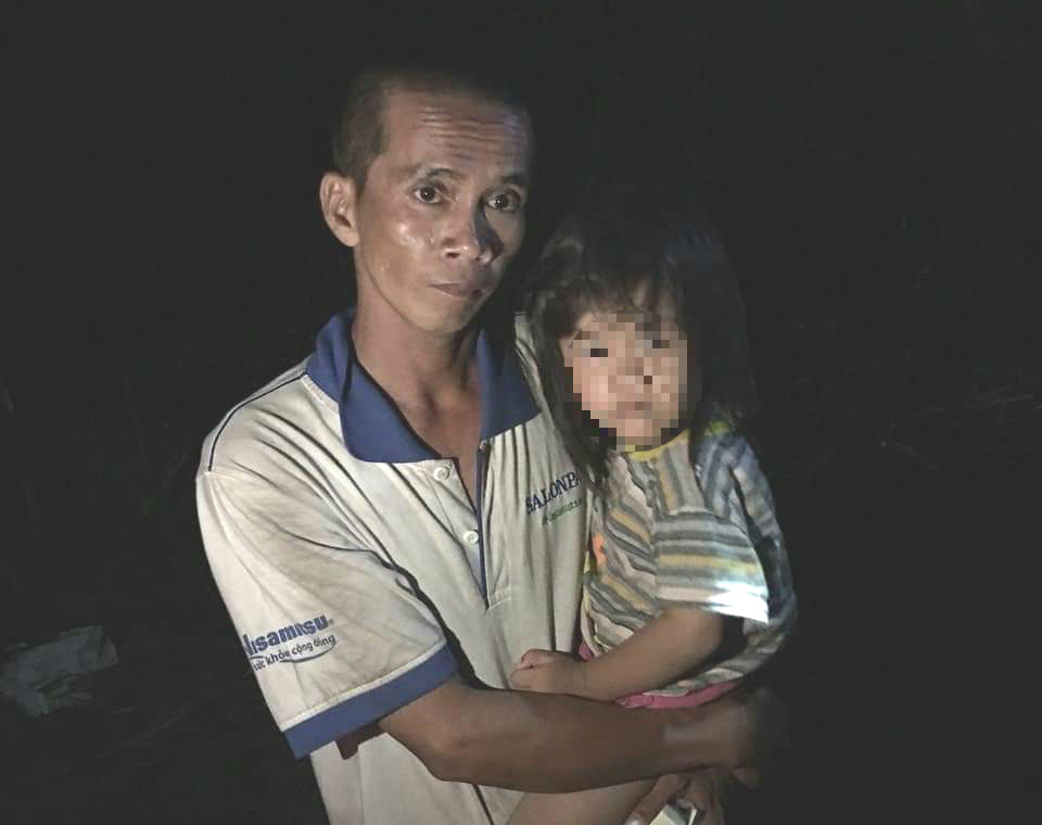 Đến khoảng 4 giờ sáng hôm sau, bà La Hồng Lệ (chủ quán cà phê tại khu vực ấp Mỹ Thiện, xã Mỹ Đức) bất ngờ phát hiện cha con ông Vũ trong quán của mình. Khoảng 30 phút sau, bà Lệ quay lại nhìn thì chỉ thấy bé gái đang nằm ngủ say trên võng. Thấy vậy, bà Lệ nhờ người cháu chạy xe máy đuổi theo tìm người đàn ông lạ mặt nhưng không kịp nên trình báo với Công an xã Mỹ Đức.
