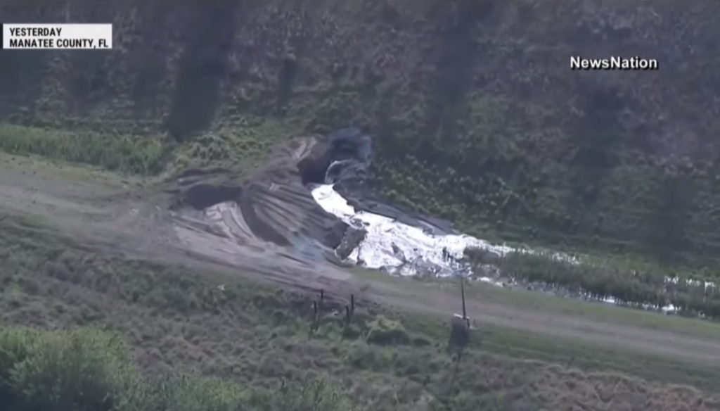 Trước đó một ngày, thống đốc bang Florida, Ron DeSantis đã ban hành lệnh hành pháp, tuyên bố tình trạng khẩn cấp với 3 hạt có thể bị ảnh hưởng bởi sự cố rò rỉ ở hồ chứa có diện tích hơn 319.000 mét vuông. Sau khi giới chức bang này cho biết đang khắc phục sự cố rò rỉ ở hồ chứa nước thải với hơn 300 triệu gallon (1,1 tỷ lít) và cảnh báo về tình huống lũ lụt thảm khốc nếu hồ chứa vỡ.