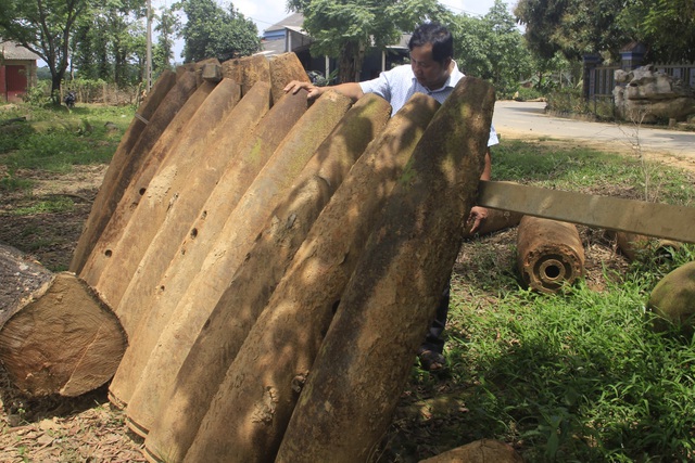 Ông Chức nói rằng, đối với các loại vỏ bom đạn có kích thước lớn, nằm ở địa hình hiểm trở thì ông phải thuê nhân công, máy móc để cẩu lên rồi đưa về nhà. Có khi phải mất 2 ngày mới đưa được quả đạn pháo ra khỏi rừng.