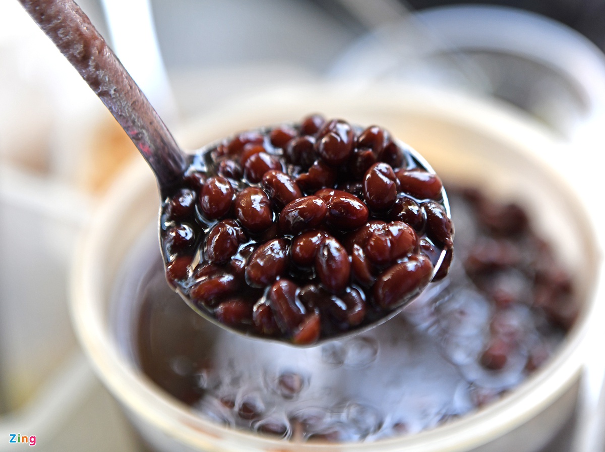 Các loại nguyên liệu được nấu từ sáng sớm. Tất cả đều do ông và cháu gái là cô Nữ chuẩn bị. Những món hút người ăn ở đây là chè mè đen, củ năng, hạt sen, sương sa hột lựu…