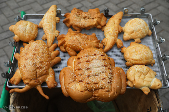 Ngoài ra trong giỏ anh Phước còn có bánh mì hình con ngựa, cua, ba ba... với nhiều kích cỡ, kiểu dáng.