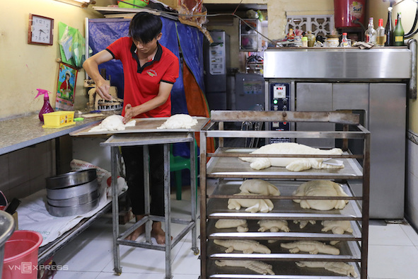 Công việc của ông chủ lò bánh mì thường bắt đầu vào tối và trưa. "Với bánh mì hình thú thì tôi chỉ làm buổi trưa vì có nhiều thời gian nặn bột, tạo hình. Tuỳ theo cảm hứng, có ngày tôi lại sáng tạo ra hình thú khác, nhưng chủ yếu vẫn là cá sấu", anh Phước cho biết.