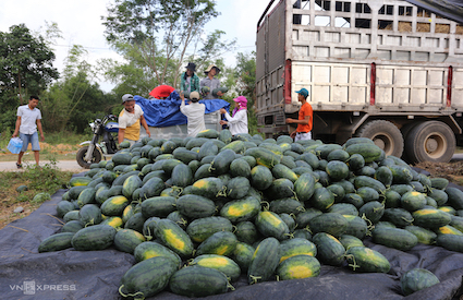 Một thương lái ở Phú Yên đến thu mua cho biết, bình quân một ngày mua từ 30 đến 100 tấn, chủ yếu là loại dưa nặng trên 2,5 kg, sau đó vận chuyển ra miền Bắc; 70% xuất sang Trung Quốc, 30% bán trong nước.