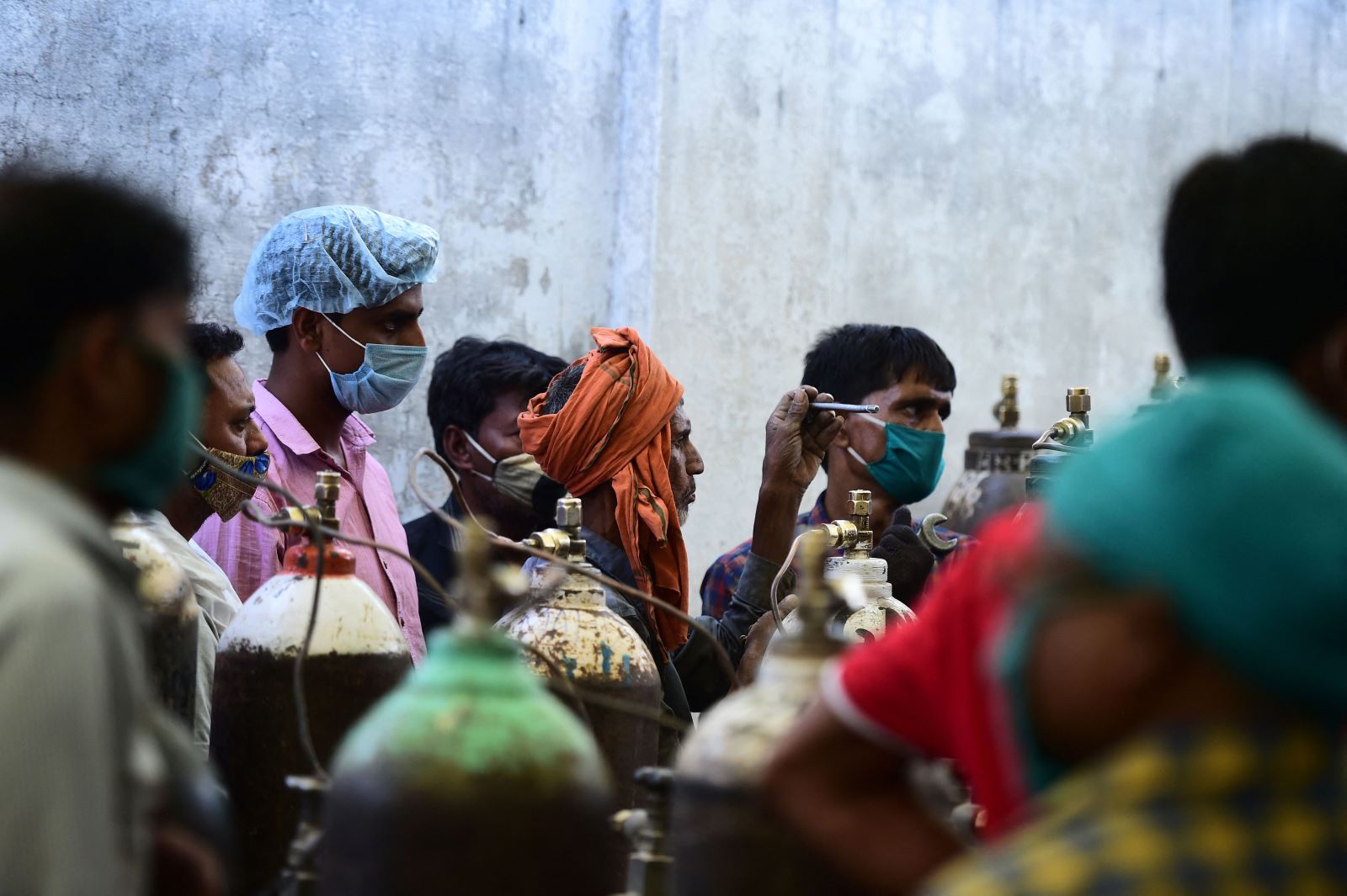 Người dân chờ bơm ô xy tại thành phố Allahabad. Ảnh: AFP