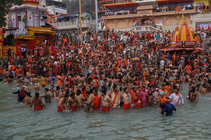 Các tín đồ Hindu tham dự lễ hội Kumbh Mela ở bang Uttarakhand vào đầu tháng 4. Ảnh: AP.