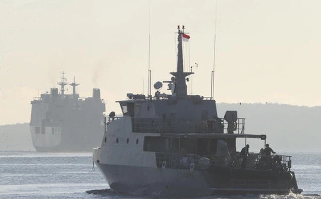 Tàu tuần tra và tàu ngầm của Hải quân Indonesia tìm kiếm tàu ngầm mất tích. Ảnh: AP
