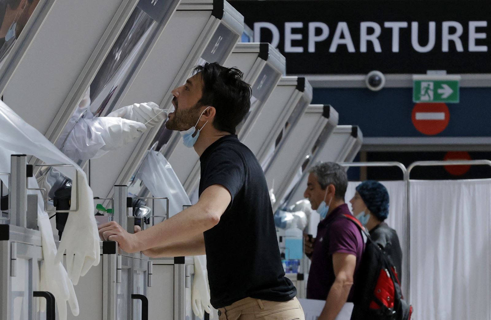 Nhân viên y tế lấy mẫu xét nghiệm COVID-19 cho hành khách tại sân bay Ben Gurion, gần Tel Aviv, Israel. Ảnh: AFP/TTXVN