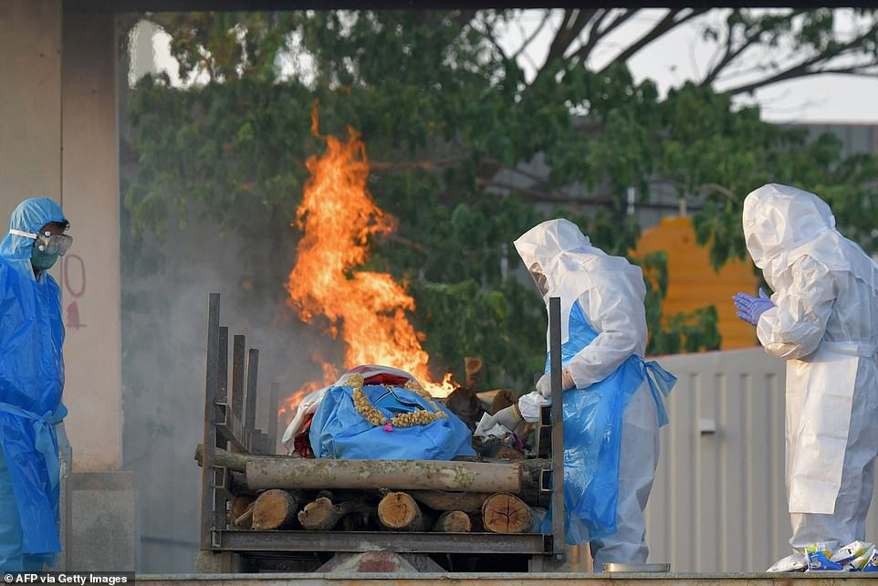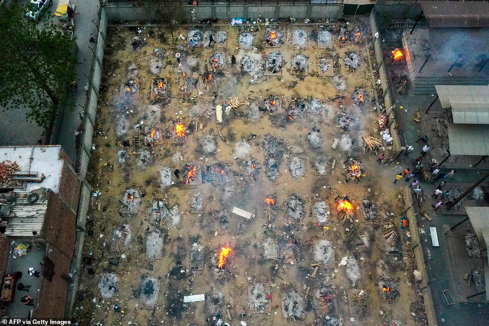 Những hình ảnh thu nhỏ từ một lò hỏa táng tạm thời ở New Delhi hôm thứ Bảy đã minh họa mức độ của đại dịch ở Ấn Độ, trong khi phóng viên Alex Crawford của Sky News mô tả tình hình như 'phần nổi của tảng băng trôi' đối với một cuộc khủng hoảng lớn hơn nhiều.