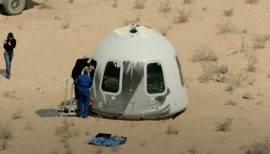 Blue Origin tung một đoạn video có cảnh Jeff Bezos lái xe tải điện Rivian R1T xuyên sa mạc Texas để đến cơ sở phóng tàu New Shepard. Tàu được thiết kế chở tối đa 6 người cùng lúc, có thể đưa hành khách lên đến độ cao hơn 100 km so với mặt đất. Cabin tàu có cửa sổ lớn cho phép hành khách ngắm nhìn khung cảnh ngoài vũ trụ và trải nghiệm cảm giác lơ lửng trong tình trạng không trọng lực 10 phút trước khi trở về Trái đất. Khi đó, tên lửa sẽ hạ cánh ở một bệ bê tông, còn cabin tàu sẽ giảm tốc bằng dù và đáp nhẹ nhàng xuống sa mạc.