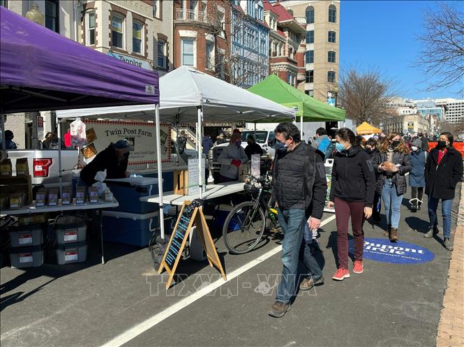 Người dân đeo khẩu trang phòng lây nhiễm COVID-19 tại một khu chợ ở Washington, DC, Mỹ, ngày 21/2/2021. Ảnh: AFP/TTXVN