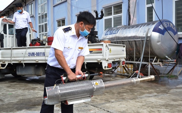 Đội công tác hỗn hợp đã dùng xe ô-tô, chở theo hai máy phun công suất lớn, tới 60 L/giờ và hai máy phun cá nhân, phun dung dịch Cloramin B, để khử khuẩn tại các nơi bệnh nhân đi chuyến bay VN 160 và nhóm chuyên gia Trung Quốc bị nhiễm Covid-19 đã đến và nghỉ lại thị xã Sa Pa.