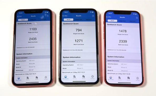 Thông số của iPhone XR cao hơn so với iPhone 11 và iPhone 12 ở bài kiểm tra đa lõi.
