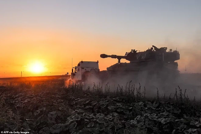 Pháo tự hành 155mm của Israel được triển khai tại một vị trí dọc biên giới Israel-Gaza.