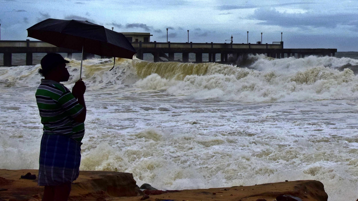 Triều cường và sóng lớn do bão Tauktae gây ra tại vùng biển gần thành phố Thiruvananthapuram, bang Kerala, Ấn Độ. (Ảnh: ANI)