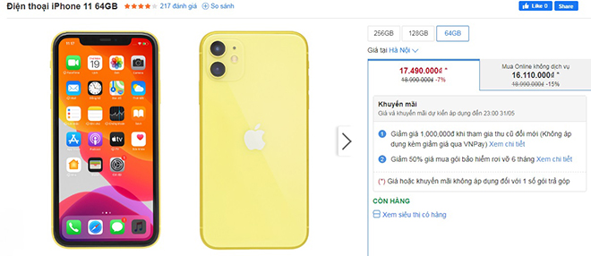 2. iPhone 11 (giảm tới 1,5 triệu đồng)