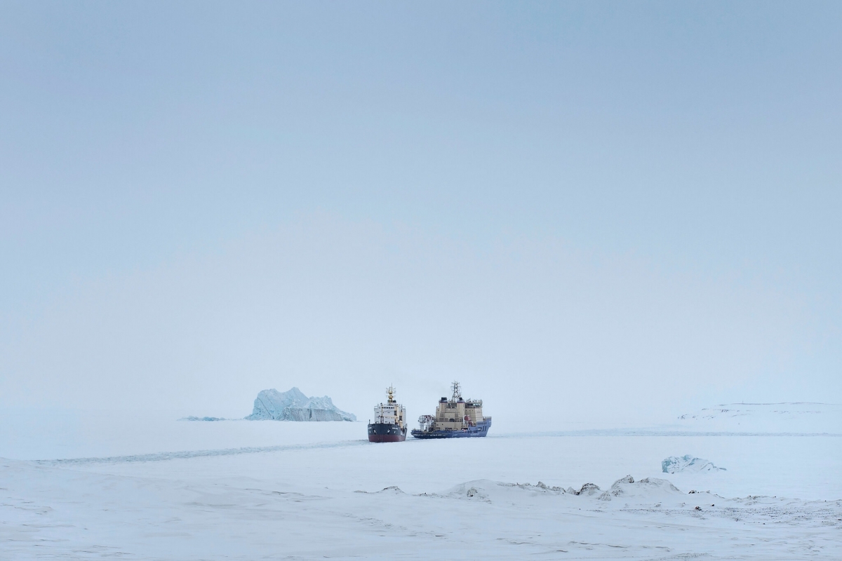 Một tàu phá băng mở đường cho một tàu chở hàng gần quần đảo Franz Josef Land. Ảnh: New York Times