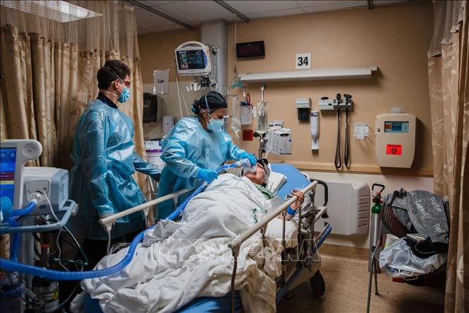 Nhân viên y tế điều trị cho bệnh nhân mắc COVID-19 tại một bệnh viện ở California, Mỹ ngày 11/1/2021. Ảnh: AFP/TTXVN